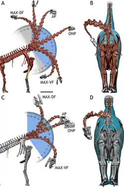 Een vervolgstudie datzelfde jaar stelde dat de voorpoten vermoedelijk zeer lang waren, dat het heiligbeen bij alle eusauropoden oorspronkelijk wigvormige sacrale wervels bezat wat de rug omhoog richtte en dat Spinophorosaurus en eerste ruggenwervel had met verlengde voorste gewrichtsuitsteeksels om de nek extra omhoog te richten, dit alles ten bate van een verhoogd verticaal voedingsbereik.