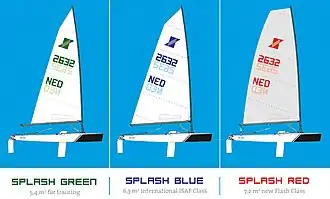 De internationale ISAF jeugdklasse heeft sinds 2014 de naam SPLASH BLUE en is voorzien van een nieuw zeilteken, het zeil is gelijk gebleven. De nieuwe SPLASH RED is het meest in het oog springend met het nieuwe grote fathead laminaatzeil, deze zal de Flash-klasse gaan vervangen. De Splash-lijn is compleet gemaakt met de SPLASH GREEN, een kleiner zeil voor op de Splash voor de jongere zeilers en voor training.