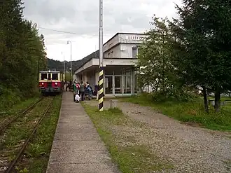 | 22,87 | Mníšek nad Hnilcom (s) | • tot 1965: aansluiting met smalspoorlijn naar: Smolnícka Huta. • vanaf 1965: smalspoorlijn buiten dienst. |