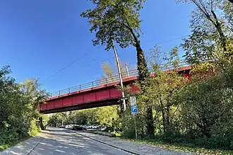 - ↑ Červený most is een spoorbrug in Bratislava die de waterloop Mlynská dolina overspant. Ze is herkenbaar aan haar rode kleur. Ze werd in 1848 gebouwd en een eeuw later, in 1948, vernieuwd. Bron: (sk) Artikel: Červený most.