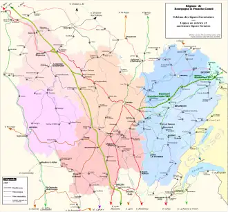 - Station Besançon Franche-Comté TGV bedient Besançon. Het station wordt ook bediend door treinen van TER Bourgogne-Franche-Comté vanuit het noorden van de streek. Het station ligt niet in Besançon zelf, maar in het noordelijk daarvan gelegen Les Auxons.