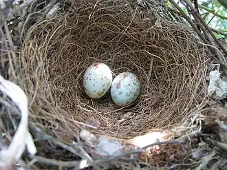 De komvormige nesten worden gebouwd in bomen of struiken. Daarin worden twee tot vijf eieren gelegd, die door het vrouwtje worden uitgebroed. De vogels zijn erg territoriaal en verdedigen hun territorium fel tegen indringers, waarbij ze zelfs roofdieren aanvallen en pikken, als ze bedreigd worden.