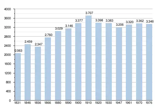 - Bronnen:NIS, Opm:1831 tot en met 1970=volkstellingen, 1976= inwoneraantal op 31 december
