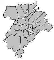 Er zijn 24 stadsdelen die het gehele gebied van de gemeente beslaan. De stadsdelen zijn: