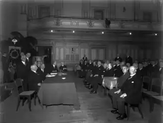 Gezicht op de stadsgehoorzaal. Glasnegatief, begin 20e eeuw.