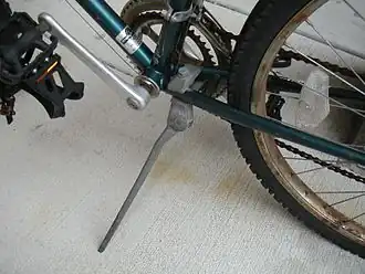 Meestal bevindt de standaard zich aan de linkerkant van de fiets, tussen de bracket en het achterwiel. Hij kan met de voet worden uit- en ingeklapt.