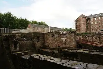 In de hoek waar de Bell Mill en de Mid Mill elkaar raken bevinden zich de Wheel Pits uit 1823-1825 waar de waterraderen zich bevonden. In 1879 werd er de eerste turbine geïnstalleerd. Centraal voor de Mid Mill bevindt zich een grote schoorsteen uit 1825, die gebruikt werd door de gaswerken. Oorspronkelijk was de schoorsteen 36,5 meter hoog, nu nog slechts 26 meter.