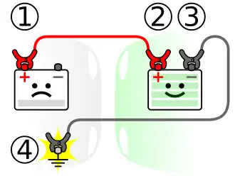 Voordat de accu's met elkaar worden verbonden, moet de motor worden stilgezet en het sleutelcontact van beide auto's worden verbroken om schade aan de elektronica van de auto te voorkomen.[1]