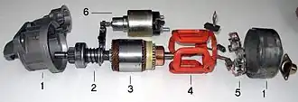 Een elektrische startmotor is over het algemeen een gelijkstroommotor die voorzien is van een in serie geschakelde veldwikkeling en ankerwikkeling. Dit type motor noemt men een seriemotor. Deze motoren hebben een hoog aanloopkoppel en de eigenschap dat het koppel zal toenemen bij een dalend toerental en maximaal is bij het inschakelen van de stroom bij een stilstaande motor. Door deze kenmerken is de seriemotor zeer geschikt als startmotor. Voor het ingrijpen van het starterrondsel in de vliegwielvertanding bestaan er verschillende constructies. Er zijn startmotoren met een verschuifbaar rondsel, maar ook startmotoren met een verschuifbaar anker, of startmotoren met een verschuifbaar rondsel met een voorschakelfase. Bij grote motoren is de startmotor soms uitgevoerd als een kleine verbrandingsmotor, met dezelfde functie als een elektrische startmotor.