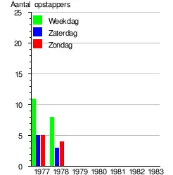 | Reizigerstellingen[1] • Weekdag • Zaterdag • Zondag |