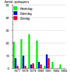 | Reizigerstellingen[1] • Weekdag • Zaterdag • Zondag |