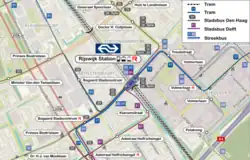 De volgende tram-/buslijnen stoppen op station Rijswijk: