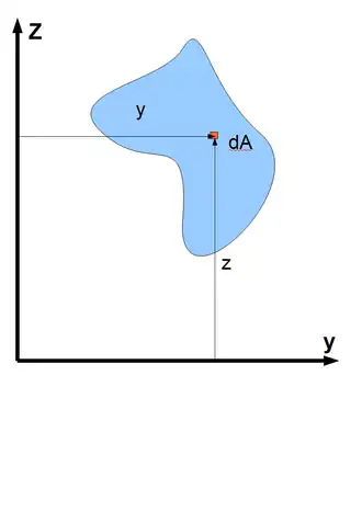 Indien de oorsprong van het gekozen assenstelsel samenvalt met het zwaartepunt, dan zijn alle statische momenten rond assen door de oorsprong nul. Voor geïntegreerd over , is het intuïtief duidelijk dat hoe verder het oppervlak zich van de -as bevindt (met andere woorden: hoe groter ) hoe groter het moment zal zijn;