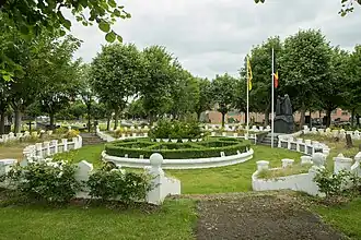Links van het centrale ronde punt ligt een cirkelvormige perk met Belgische gesneuvelden uit de beide wereldoorlogen. Daarbij staat een bronzen beeldengroep uit 1922 ontworpen door Guillaume Charlier. Daarop staan de namen van de 50 gesneuvelde stadsgenoten uit de Eerste Wereldoorlog waarvan er 29 hier begraven werden. Er liggen ook 5 mannen uit Blankenberge, die op 28 november 1889 omkwamen toen ze probeerden de bemanning van het Franse schip Nominoé te redden.[2] Ten slotte liggen hier ook enkele verzetslieden en politieke gevangenen uit de Tweede Wereldoorlog begraven. Er ligt ook nog een dode van de Koreaanse Oorlog.