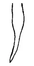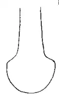 Buikig, cilindrisch, versmald naar de top, geleidelijk, basis, knol aan basis afwezig, abrupt, gerand.