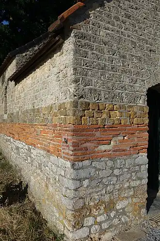 | Bouwmateriaal | Romeinse spolia (baksteen, zandsteen, tufsteen) en niet-Romeinse blauwe hardsteen | |||