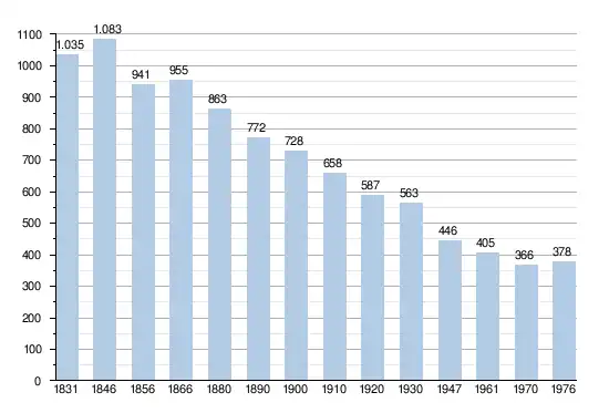 - Bronnen:NIS, Opm:1831 tot en met 1970=volkstellingen, 1976= inwoneraantal op 31 december
