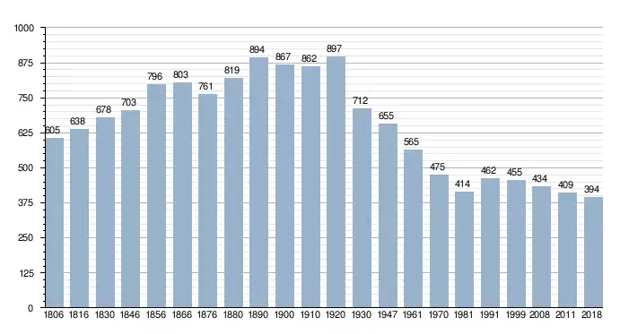 Bronnen: NIS, www.westhoek.be en Stad Veurne. Opm:1806 t/m 1991=volkstellingen; 1999=inwoneraantal op 1 januari; 2008=inwoneraantal op 14 februari; 2011=inwoneraantal op 14 juni