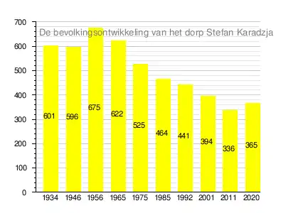 Op 31 december 2020 telde het dorp Stefan Karadzja 365 inwoners.[1] Het aantal inwoners vertoont al tientallen een dalende trend: in 1956 woonden er nog 675 inwoners in het dorp.