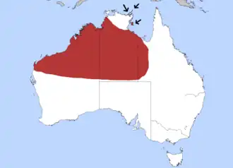 | Varanus acanthurus insulanicus | Mertens, 1958 | Eilanden in de Golf van Carpentaria |