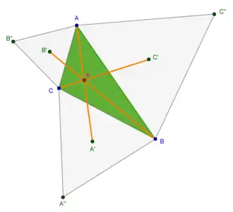 De punten van Napoleon zijn de middelpunten van de omgeschreven cirkels van de kiepertdriehoeken gevormd met aangeplakte gelijkzijdige driehoeken.