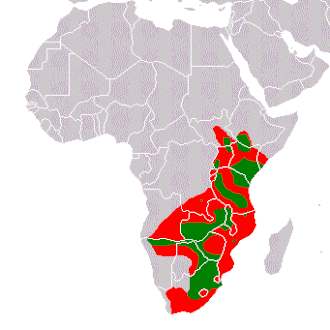| Verspreidingsgebied. Rood: historische verspreiding, Groen: hedendaagse verspreiding. (Moelman, 2002) | |||||||||||||