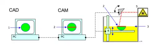 Het kenmerk van het stereolithografieproces is dat door een laagsgewijze polymerisatie van een vloeistof er een vorm wordt gecreëerd.