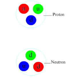 Het feit dat er zes soorten quarks bestaan (aangeduid met de letters u, d, s, c, t en b) en evenveel antiquarks, én het feit dat hadronen in aangeslagen toestand een aanzienlijk hogere massa kunnen hebben dan in de grondtoestand (waardoor ze als afzonderlijke deeltjes benoemd zijn), geeft aanleiding tot de grote verscheidenheid aan hadronen. Een proton heeft de structuur uud en een neutron bestaat uit de quarks ddu.