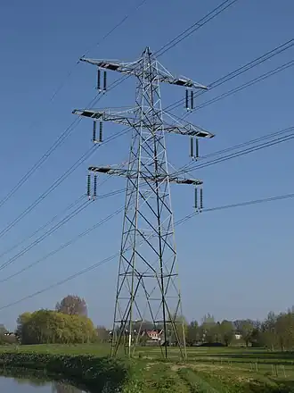 Hoogspanningsmasten (‘pylonen’) staan op een onderlinge afstand van 100 tot ongeveer 200 meter. De meeste masten zijn steunmasten en bij deze masten lopen de kabels rechtdoor. Deze masten hebben als doel de kabels recht omhoog 'op' te trekken tot een gewenste hoogte en hebben enkel neerwaartse krachten. Bijgevolg hangen de isolatorenkettingen recht naar beneden en staan ze loodrecht op de hoogspanningsdraden.
