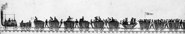 Sinds de Middeleeuwen werden de kolen met paarden naar nabijgelegen rivieren gebracht om van daaruit naar het verre Londen te worden verscheept. In de 16de eeuw waren voor dit doel alleen in het graafschap Durham constant honderden, vermoedelijk zelfs duizenden pakpaarden onderweg. De paarden droegen de kolen aanvankelijk in zijtassen. Later werden de kolen op karren geladen, waar de paarden voor werden gespannen. Paden en wegen waren echter voor dit soort zware karren veelal onvoldoende verhard. Vandaar dat er al gauw ‘tramwegen’ ontstonden, waarop een paard een ton kolen in een dag over een afstand van vijftien tot zeventien kilometer kon trekken. Deze tramwegen bestonden uit een in de bodem ingebouwde, met dikke houten planken bekleed rijspoor, waarover de karrenwielen met minder weerstand liepen. Geïnspireerd door de al eeuwenoude ervaringen met houten en later gietijzeren rails in mijnen en steengroeven werd tegen het einde van de 18e eeuw ook op tramwegen geëxperimenteerd met rails van gietijzer. Soms reden daarop hele treinen van kolenwagens, getrokken door een stel paarden. Om dat soort transporten soepel te laten verlopen moesten steile hellingen in het traject worden vermeden. Vanaf de 18e eeuw werden de tramwegen daarom steeds vaker voorzien van bruggen, dammen en viaducten en soms zelfs van tunnels.