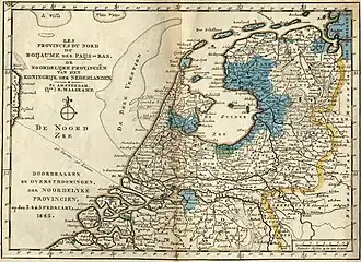 - ↑ Kaart van de Provincie Vriesland met aanwijzing der Doorbraken en overstroomde gedeeltens door den Watervloed van den 4.den en 5.den February 1825