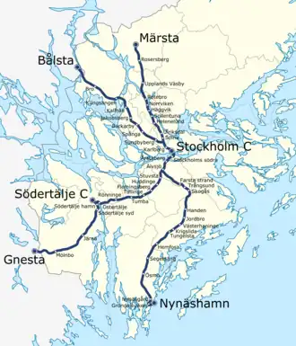 De Storstockholms Lokaltrafik gebruikt deze treinen op de volgende trajecten: