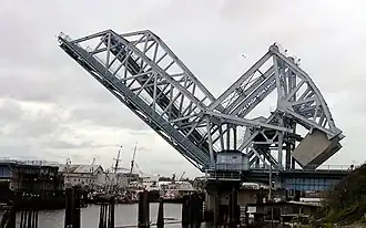 Een Straussbrug is een type basculebrug waarvan het tegengewicht zich boven het wegdek bevindt en die door drijfstangen geopend of gesloten wordt.[1] De Straussbrug lijkt op de klassieke ophaalbrug. Typerend voor een Straussbrug is dat de achterkant van de balans veel korter is dan de overspanning. Om het evenwicht te bewaren moet het contragewicht veel zwaarder zijn dan de overspanning zelf. Een voordeel van de korte balans is dat de hameipoort van een Straussbrug minder hoog hoeft te zijn. Het contragewicht van een Straussbrug daalt meestal tot vlak boven het wegdek.