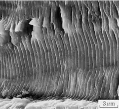 Bij materiaalonderzoek na breuk kan men de striaties bij vergrotingen tot 1000x zichtbaar maken. Ieder streepje (striatie) op het breukvlak staat voor een belastingscyclus. Deze striaties ontstaan door metaalvermoeiing en worden daarom soms ook aangeduid met de term vermoeiingslijnen.