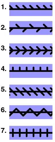 De 7 strookpatronen staan hieronder genoemd en rechts afgebeeld. Er staat niet steeds bij dat zij ook door de translatievector worden voortgebracht.