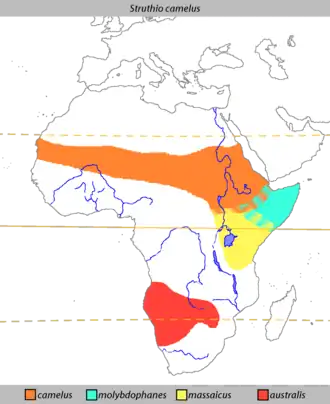 S. molybdophanes, de Somalische struisvogel – van Somalië, Ethiopië en noordelijk Kenia – wordt soms als ondersoort beschouwd, maar staat onder meer als aparte soort op de IOC World Bird List.[4]
