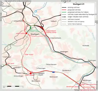 De plannen omvatten nieuwe bovengrondse en metrolijnen die het station in de omsloten centrale vallei van Stuttgart verbinden met bestaande lijnen. De hogesnelheidslijn Stuttgart-Wendlingen die door een nieuwe tunnel loopt, de Fildertunnel, zou het vervangende Hauptbahnhof verbinden met een nieuw Filderstation (Filderbahnhof), dat de luchthaven, de Messe (handelsbeurs) en de wijk Filderstadt bedient. De lijn zou dan aansluiten op de nieuwe hogesnelheidslijn Wendlingen - Ulm, die eind 2022 werd geopend. Het rangeerstation zou worden verplaatst naar het gebied van het station van Untertürkheim om land vrij te maken voor herontwikkeling.