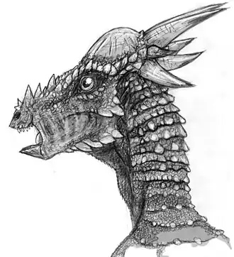 - ↑ E.B. Giffin, D.L. Gabriel, and R.E. Johnson, 1988, "A new pachycephalosaurid skull (Ornithischia) from the Cretaceous Hell Creek Formation of Montana", Journal of Vertebrate Paleontology 7(4): 398-407