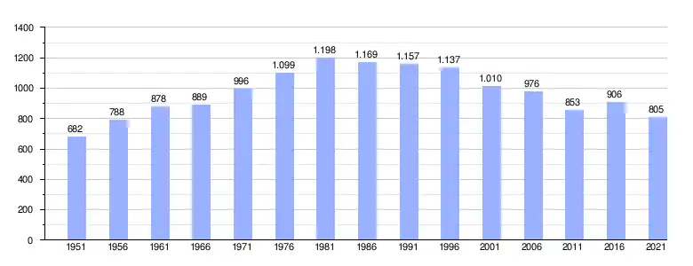 | Demografische ontwikkeling van Summerford tussen 1951 en 2021 |