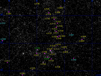 - ↑ Alhoewel het is opgenomen in SIMBAD (CDS, Centre de Données Stellaires, Strasbourg) zijn er voor de Columba supercluster geen coordinaten beschikbaar, alsook geen SCl nummer. Het sterrenbeeld Columba (Duif) bevindt zich in het gebied omstreeks 6:00 (Rechte Klimming) en -30°35' (Declinatie); een tiental graden ten westen van het punt halverwege de twee helderste sterren aan de sterrenhemel: Sirius en Canopus.
