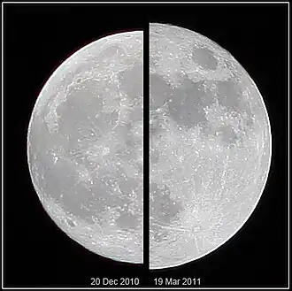 - ↑ Phillips, Tony, Dr., Super Full Moon. Science@NASA Headline News. NASA (March 16, 2011). Gearchiveerd op 7 mei 2012. Geraadpleegd op 22 June 2013.