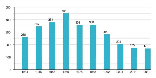 Van de 175 inwoners die in februari 2011 zijn geregistreerd, waren er slechts 14 jonger dan 15 jaar oud (8%), terwijl er 37 inwoners van 65 jaar of ouder werden geteld (21%).[2]