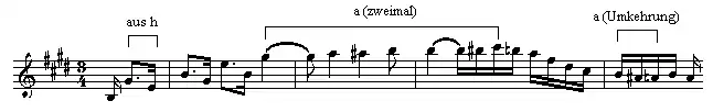 voorbeeld 1 a: leidend chromatisch 3-toons motief (opening deel 1)