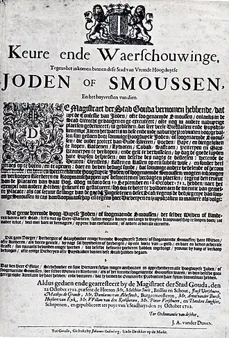 - ↑ a b c d Itterzon, ds. H.C. van (1972) Gouda en de Joden in: Gouda zeven eeuwen stad, uitg. Oudheidkundige kring "Die Goude", Gouda