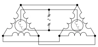 Indien twee synchro's met elkaar verbonden worden met een wisselspanning op de primaire wikkelingen dan neemt de ene synchro de hoekverdraaiing over van de andere synchro.