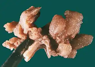 - ↑ a b c Kumar et al., Pathologic Basis of Disease, 2e , pg 768Sjabloon:Isbn missingSjabloon:Missing year