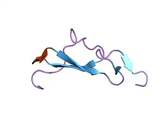 - ↑ a b McInnes C, Wang J, Al Moustafa AE, Yansouni C, O'Connor-McCourt M, Sykes BD (October 1998). Structure-based minimization of transforming growth factor-alpha (TGF-alpha) through NMR analysis of the receptor-bound ligand. Design, solution structure, and activity of TGF-alpha 8-50. The Journal of Biological Chemistry 273 (42): 27357–27363. PMID 9765263. DOI: 10.1074/jbc.273.42.27357.