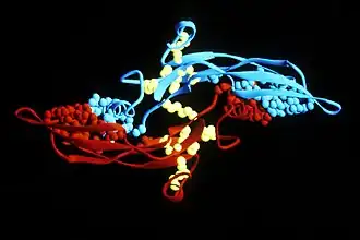 - ↑ Saharinen J, Keski-Oja J (August 2000). Specific sequence motif of 8-Cys repeats of TGF-beta binding proteins, LTBPs, creates a hydrophobic interaction surface for binding of small latent TGF-beta. Molecular Biology of the Cell 11 (8): 2691–704. PMID 10930463. PMC 14949. DOI: 10.1091/mbc.11.8.2691.