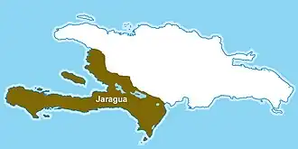 De cacicazgo Jaragua overspande het gehele zuidwesten van het eiland Hispaniola. Hij werd in het noorden begrensd door de cacicazgo Marien, ten zuiden door de Caribische zee, ten oosten door de cacicazgos Marien en Maguana en in het westen door de Straat van Jamaica.
