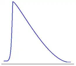 - De piek is minder steil aan de rechterkant van het midden; dit wordt tailing genoemd. Hierbij is de tailingfactor groter dan 1.